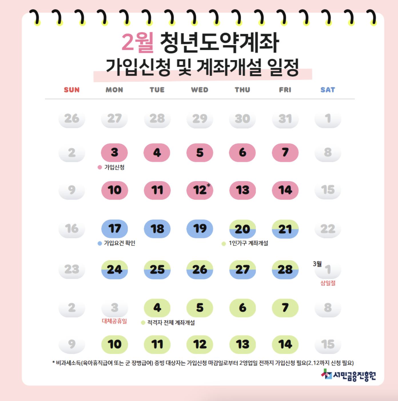 추가로 참고하여 올리는 2월 청년도약계좌 가입 및 계좌개설 일정입니다.